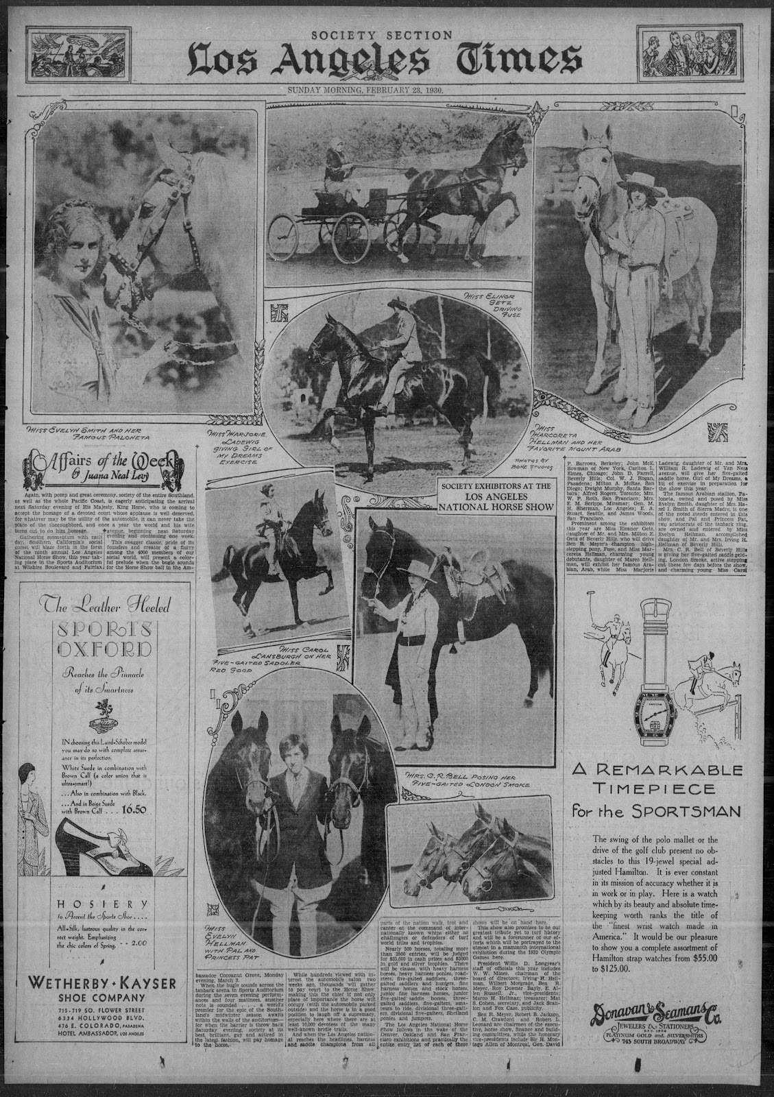 This may be because large horse shows often appeared in the "society" pages of newspapers. Many wealthier people in Southern California rode American Saddlebreds and Thoroughbreds, and drove Saddlebreds, Hackneys, and Hackney and high-stepping Shetland Ponies.